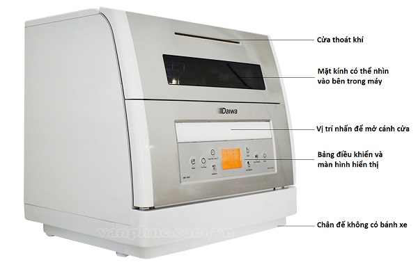 - Máy rửa bát để bàn: Là loại máy có thiết kế khá đơn giản, kiểu dáng nhỏ gọn, giá bán rất rẻ & phù hợp với những gia đình khoảng 2 người. Với có dung lượng nhỏ nên máy rửa chén để bàn hầu như chỉ có thể rửa được một số lượng nhỏ chén bát, do đó dòng máy này không được ưa chuộng và phổ biến cho lắm.